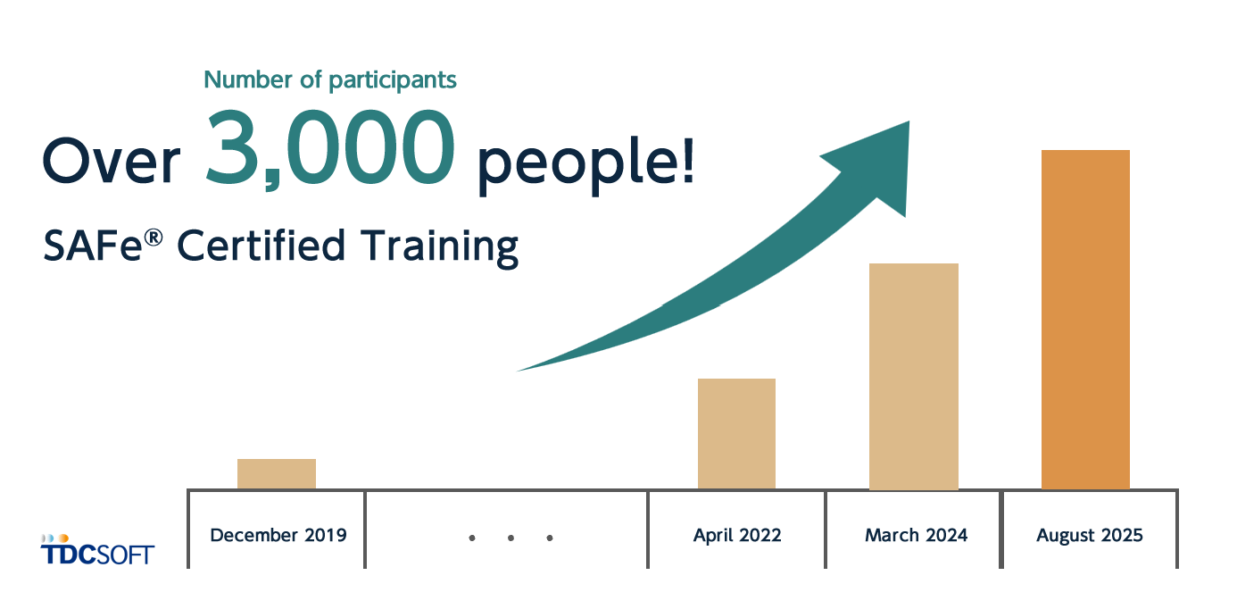 TDC Soft, Inc. (President: Hiroyoshi Kobayashi, hereinafter referred to as “TDC Soft”) is pleased to announce that the total number of participants in the SAFe® ( Scaled Agile Framework®) certification training, a framework for promoting Agile in large organizations, provided by Scaled Agile, Inc. ( headquartered in Colorado, USA; Steve Matthesen, CEO), a framework for promoting Agile in large organizations, has reached a cumulative total of 3,000 participants (*1) as of August 2025.