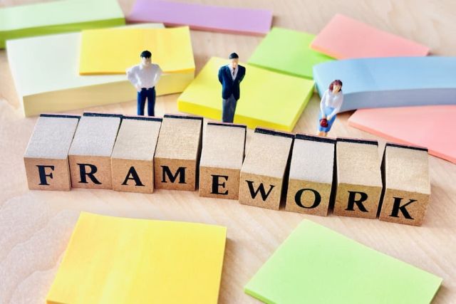 フレームワークとは、複雑な事象を整理し、論理的に考えるための「思考の枠組み」です。情報の構造化により、思考の精度とスピードを向上させる効果を持ちます。また、成果物や結果に一定の型があるため、チーム内で共通言語として機能する点もメリットです。