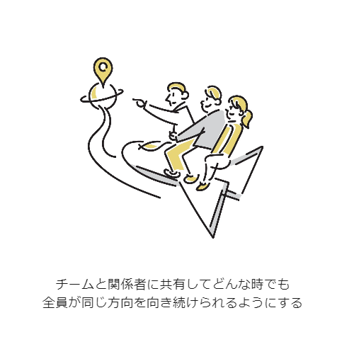 3. チームと関係者に共有してどんな時でも全員が同じ方向を向き続けられるようにする