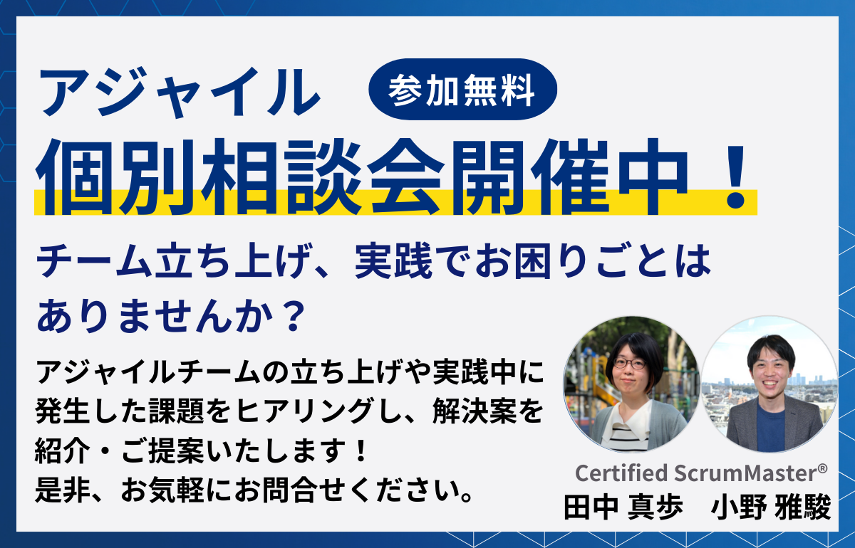 本ワークショップで講師を務めた小野が開催するアジャイルの相談会です。