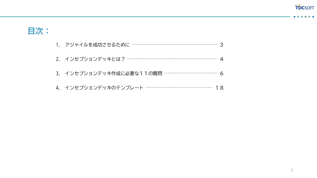 インセプションデッキとは、チームがゴールとその背景を明確にして共通認識を図るために用意された11の質問からなるものです。