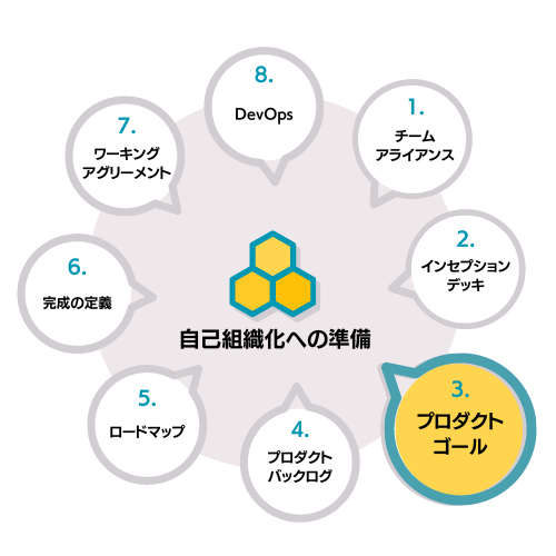 自己組織化されたチームを作るための準備として以下の8つがあげられます。