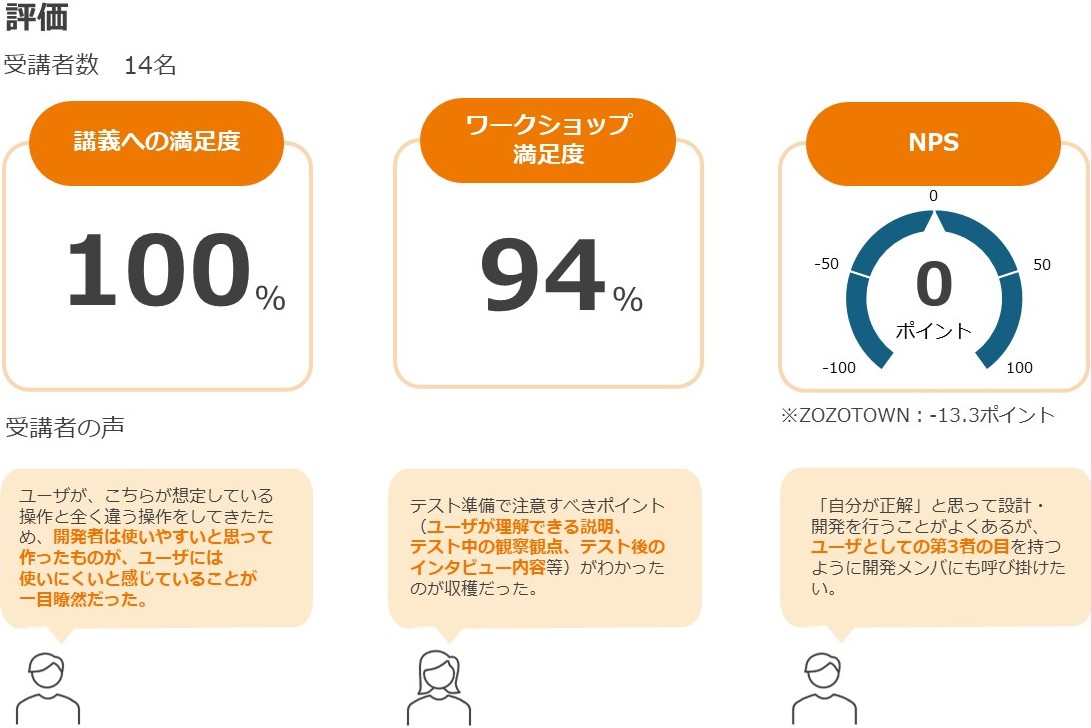 半日の研修ではあるが、「テストだけでなく、作っている最中にもユーザの姿を考えるようになった」という受講者が非常に多い。受講者からのアンケート結果を一部紹介する。