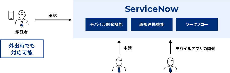 ServiceNowは、申請・承認作業がいつでもどこからでも行えるように、モバイルアプリを用意しています。