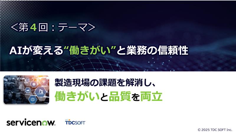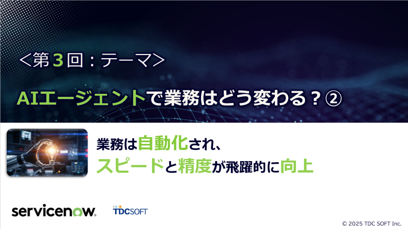 「初めてのServiceNow」シリーズの第1回~5回までをまとめて視聴できます。ServiceNow 佐宗 氏とともに、ServiceNowの基本からAIエージェントの活用までを1本あたり5分ほどでわかりやすく解説します。